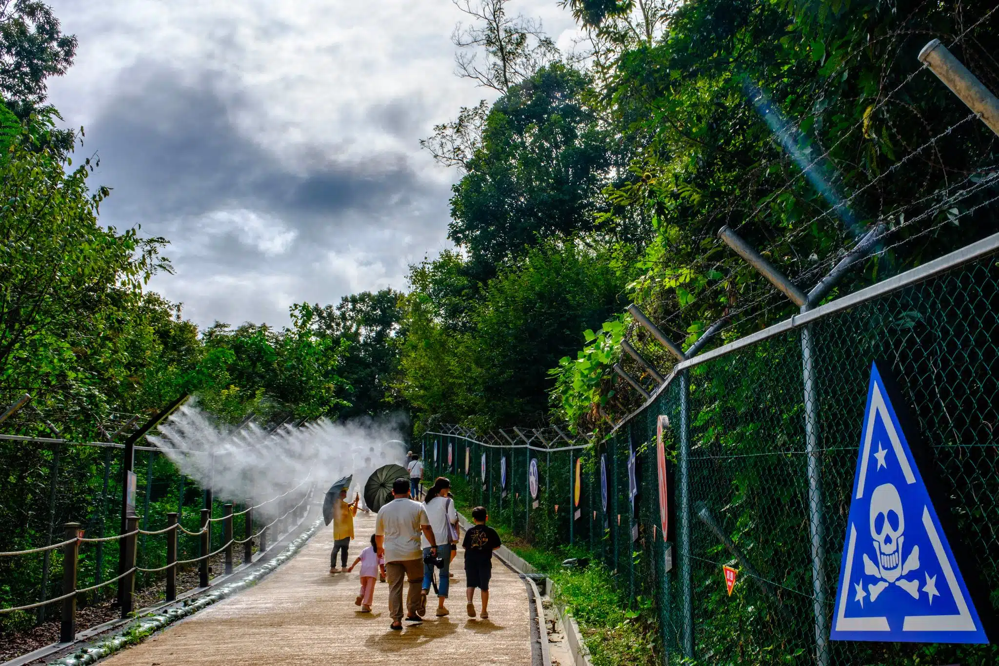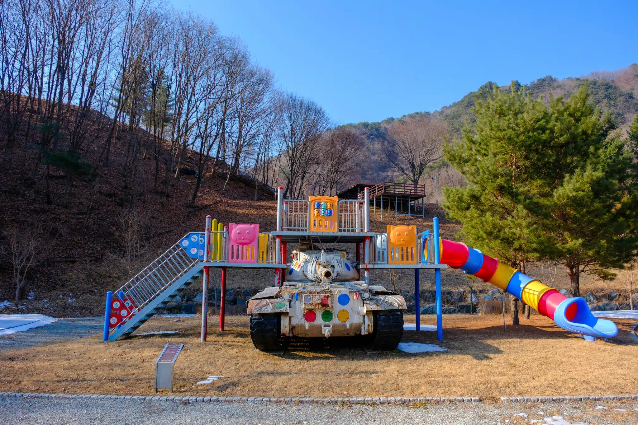 An actual frontline, frozen since 1953. A very real war zone with its military checkpoints, minefields, watchtowers, no-warning shooting zones and razor-wired fences accessible to everyone by subway, a 45 minutes taxi ride, or a half-day package tour from the buzzling Seoul megapolis and its Korean barbecues, k-pop, k-drama, k-cosmetics and k-everything scene.
