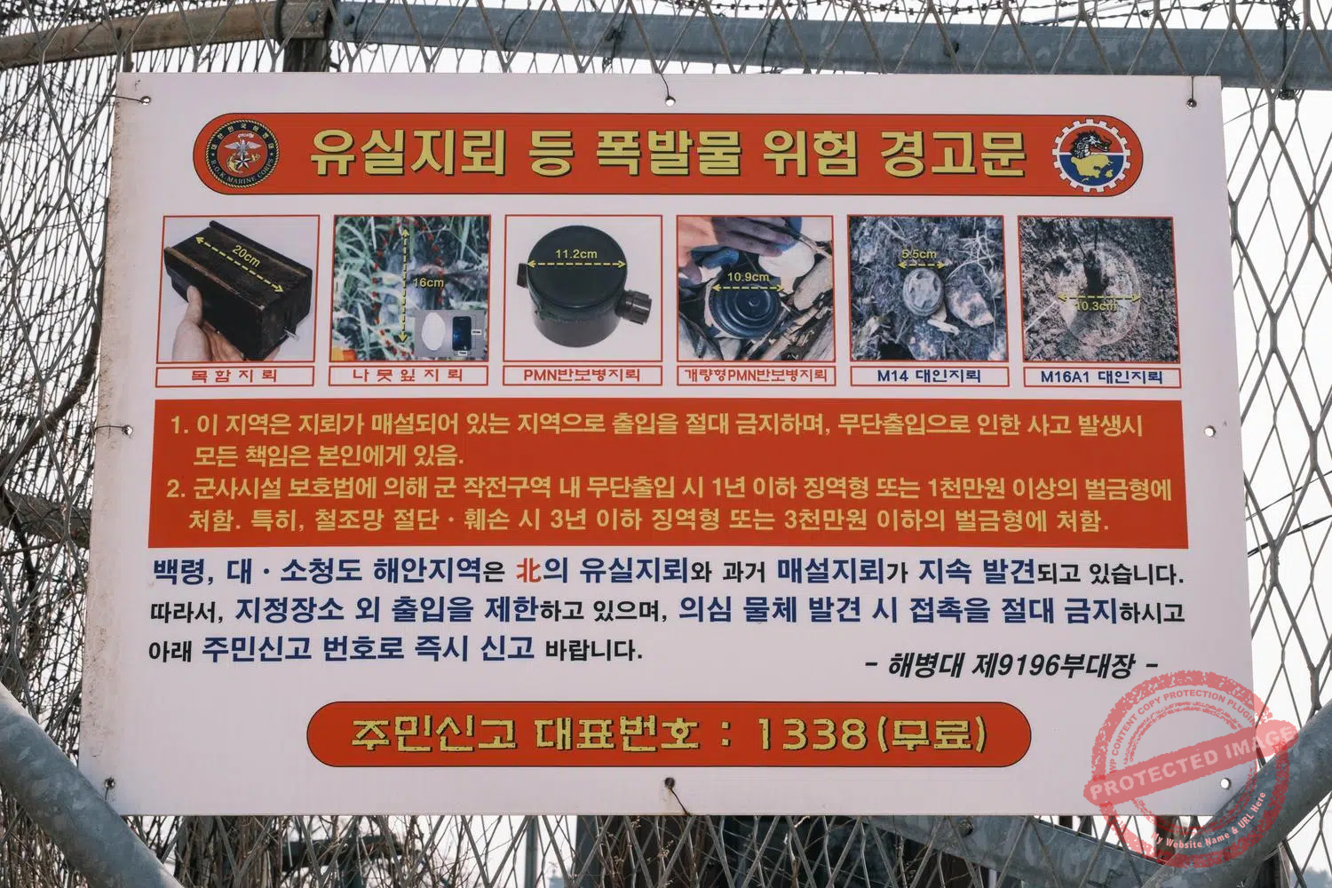 The gates to the beaches are double-locked at sunset. But an emergency call button is available should any North Korean defector land here at night. “The Republic of Korea welcomes you”, says the sign. “This is Baengnyeong Island, South Korea. Press the signal button below and we will guide you to a safe area”. This type of installation is widespread on all the islands of the Yellow Sea and along the Han River estuary.
