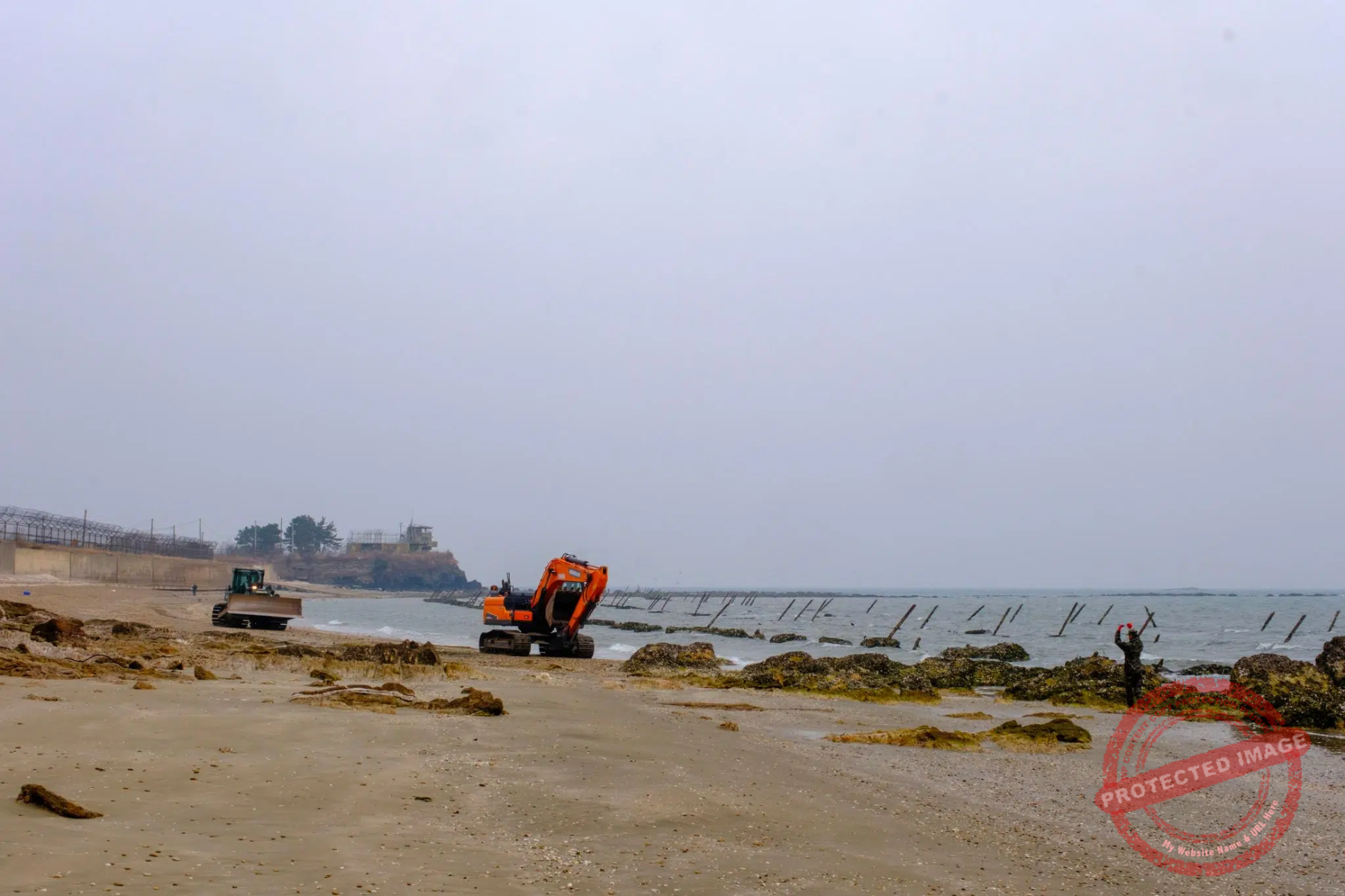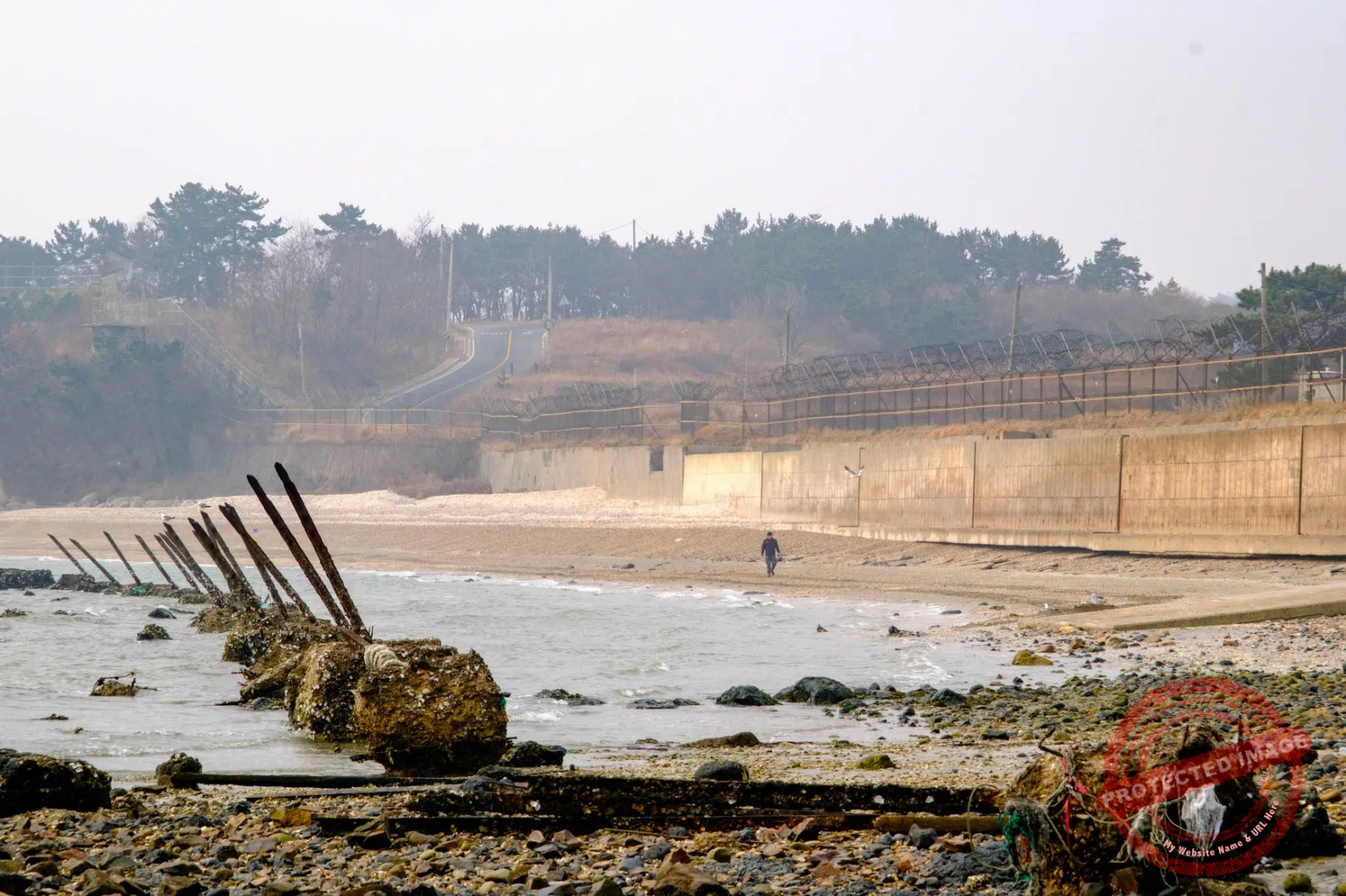 Dragon’s teeth, designed to disembowel any enemy landing craft, protect the coast of Baengnyeong Island (March 2025).