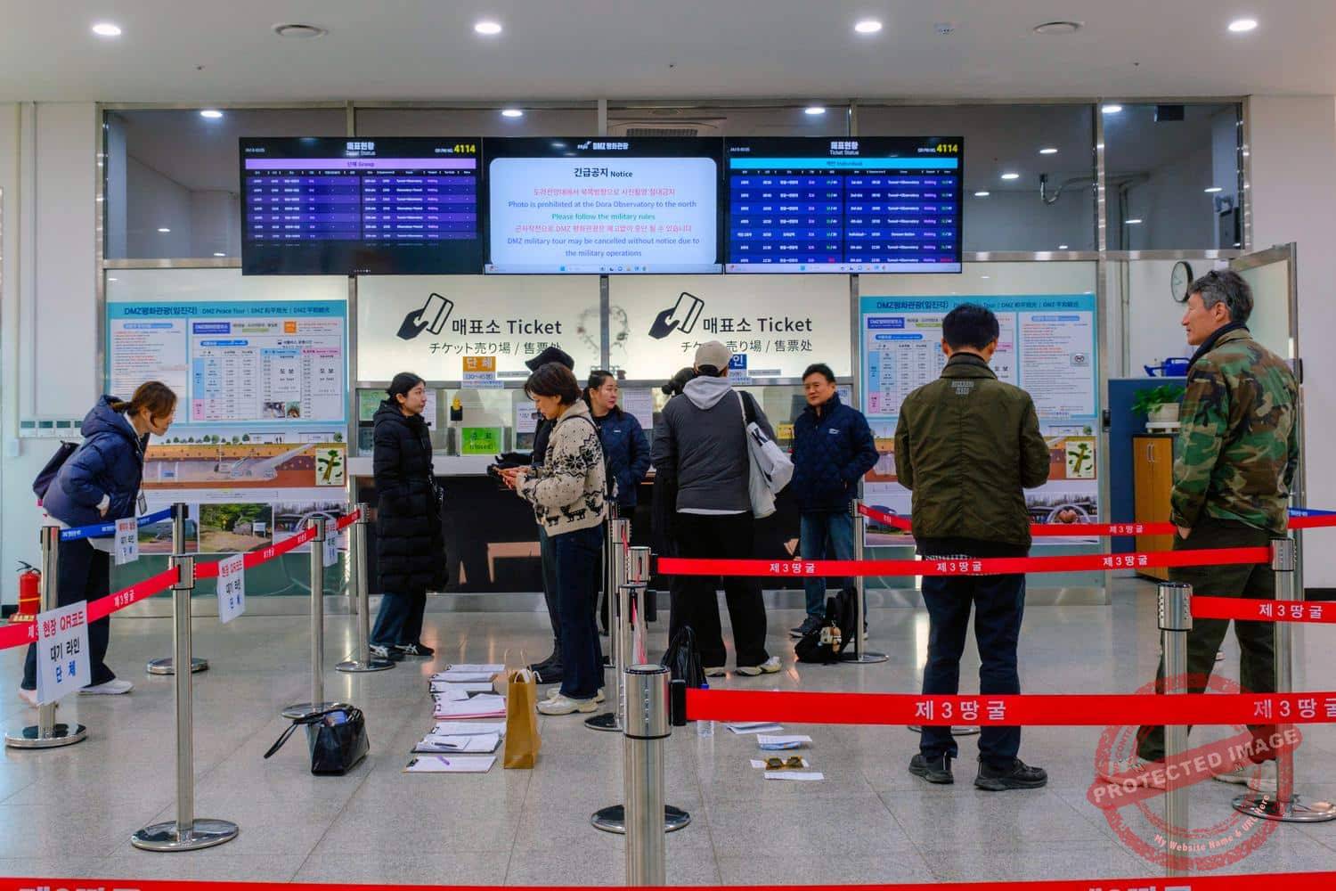 The wait at Imjingak can be long, as permits to enter the CCZ are issued on a first-come, first-served basis and for a specific time slot. At weekends during the high season, it is not uncommon for groups to arrive here before six in the morning and only be able to continue their journey in the early afternoon.