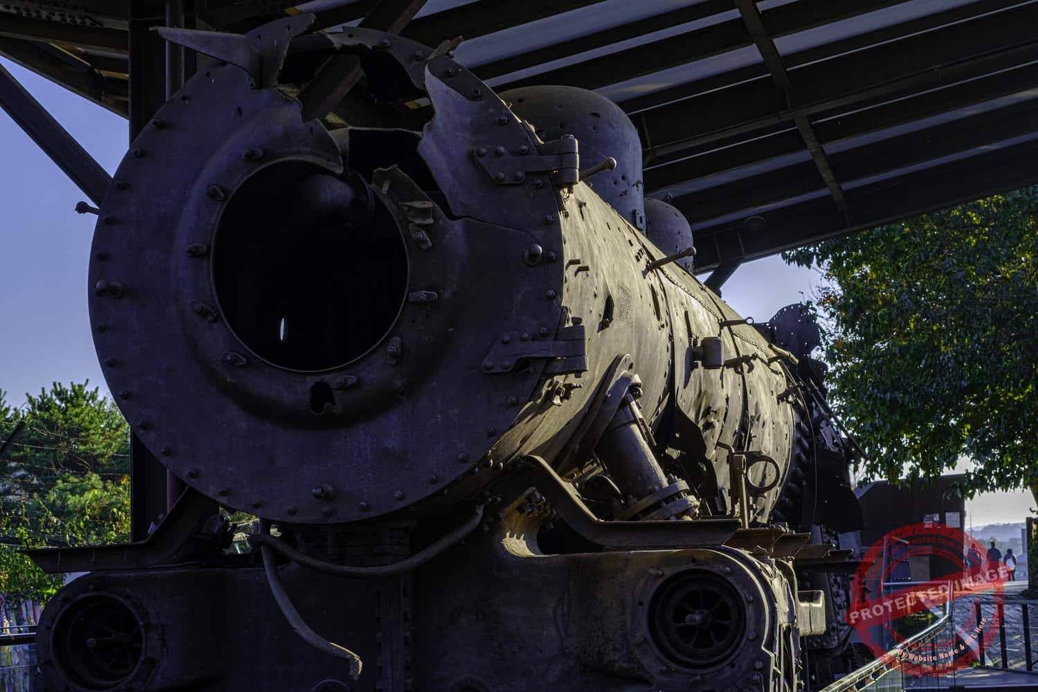 The Sensetsu steam locomotive, riddled with shell holes and bullets (November 2024).