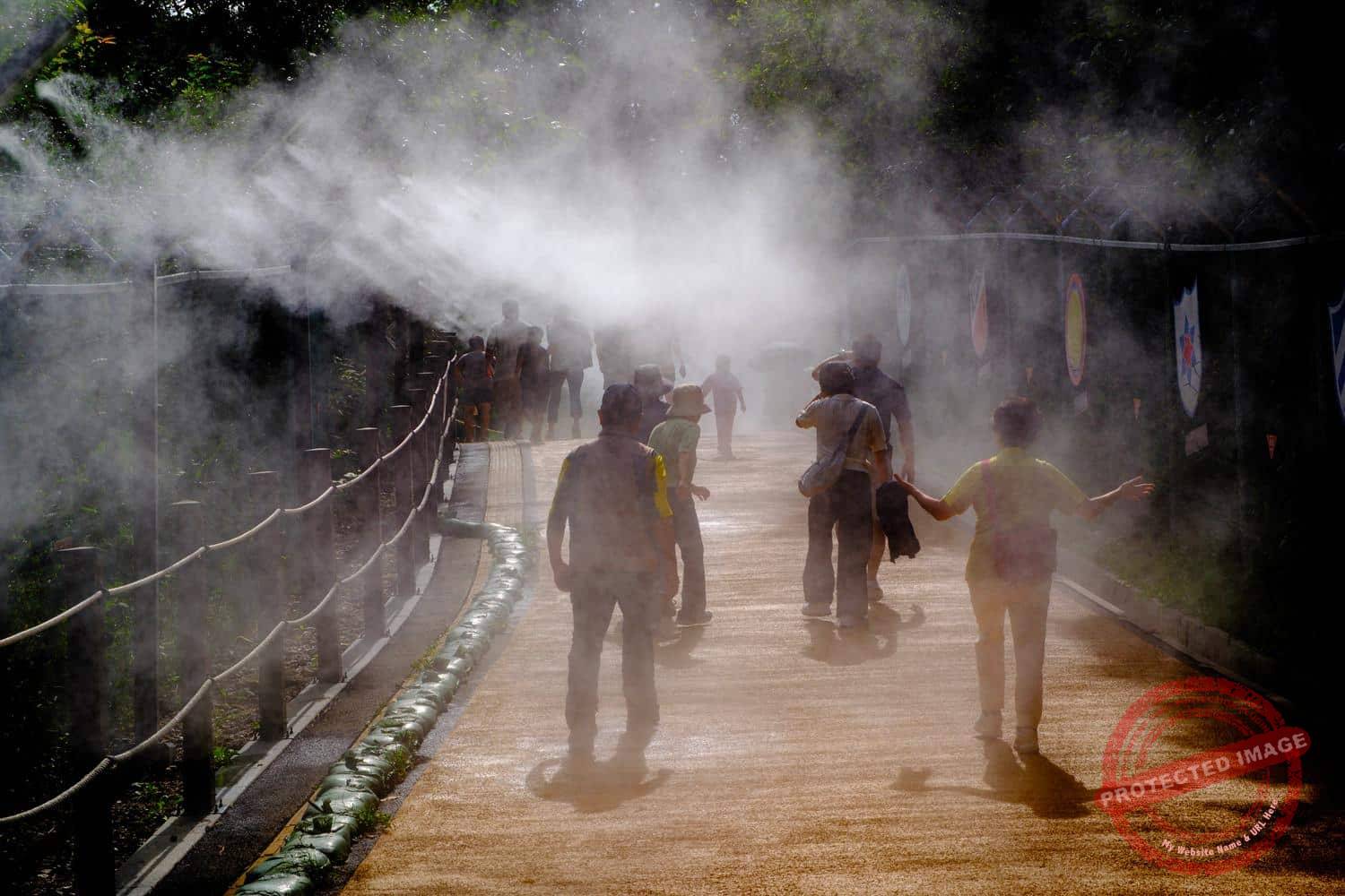 Water sprays along “Military Street”, Imjingak, during a hot late summer day (September 2024).
