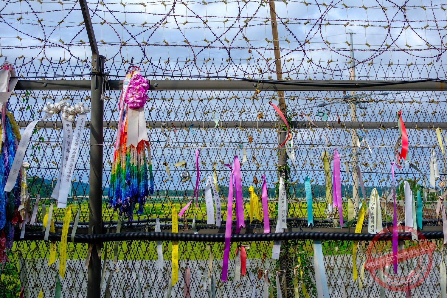 "Peace ribbons" attached to the Civilian Control Line fence in Imjingak.