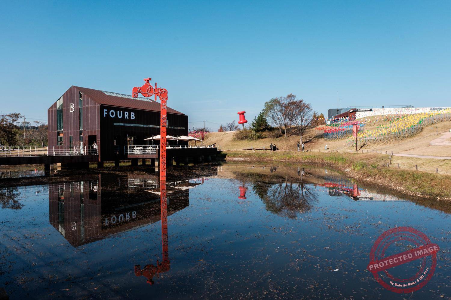 Numerous funny works of art and forests of colourful windmills calling for reunification line the immense lawn. Open-air film screenings and music performances also take place here when the weather allows.
