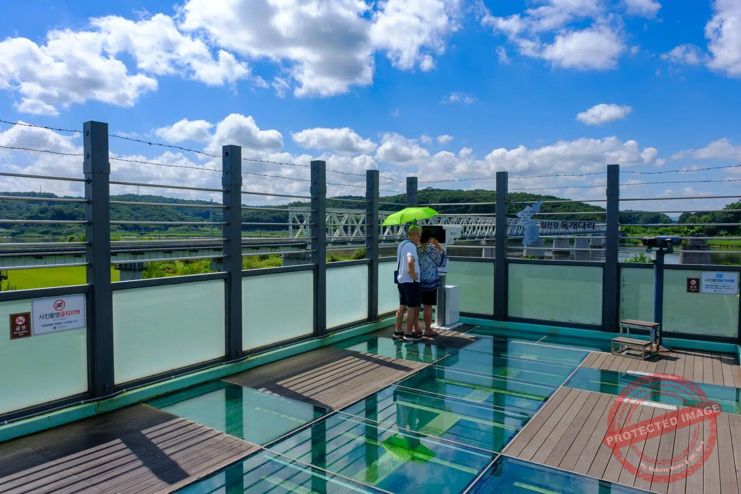A couple observes the Freedom Bridge and the north bank of the Imjin River (September 2025).