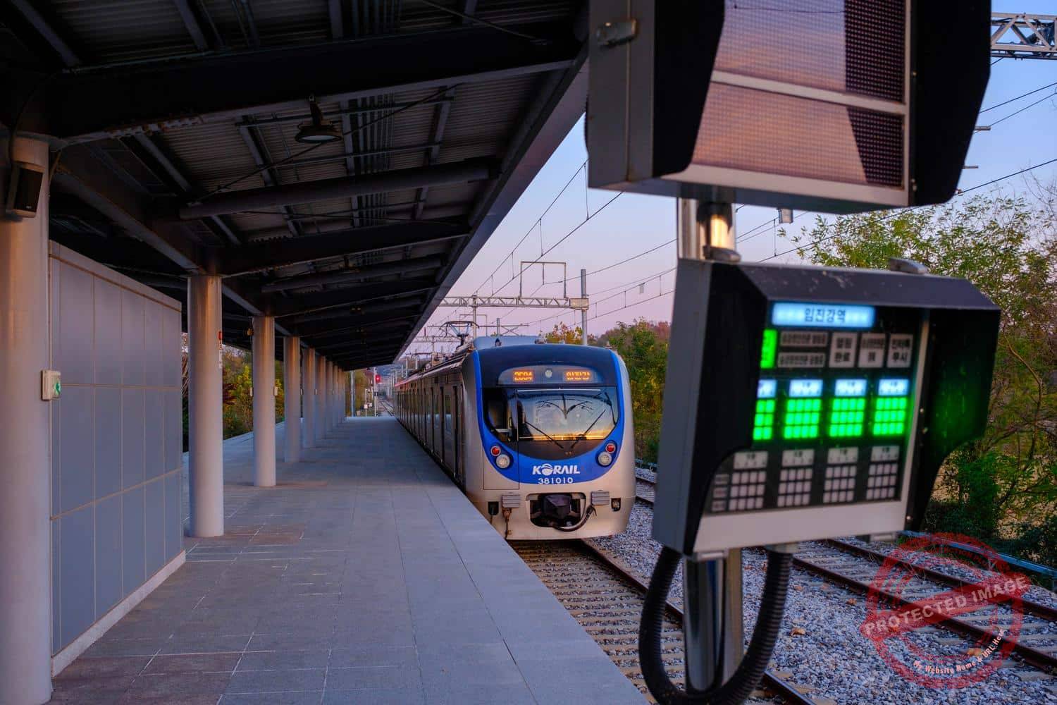 Imjingang Station is the terminus of the Gyeongui line, which before the Korean War ran from Busan to the Chinese border. The station has a nice sign indicating the distance to Pyongyang. But only a handful of local trains serve this station each day.