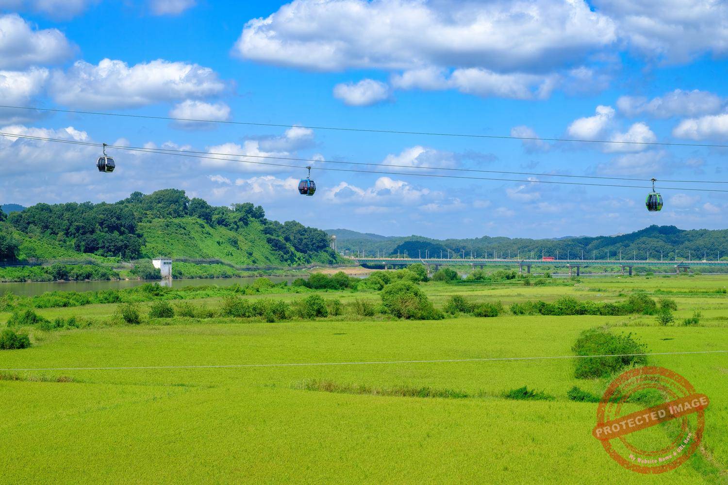 The ‘Paju Imjingak Peace Gondola’, sometimes wrongly nicknamed ‘DMZ Gondola’, crosses the Imjin River into the Civilian Control Zone (September 2024).