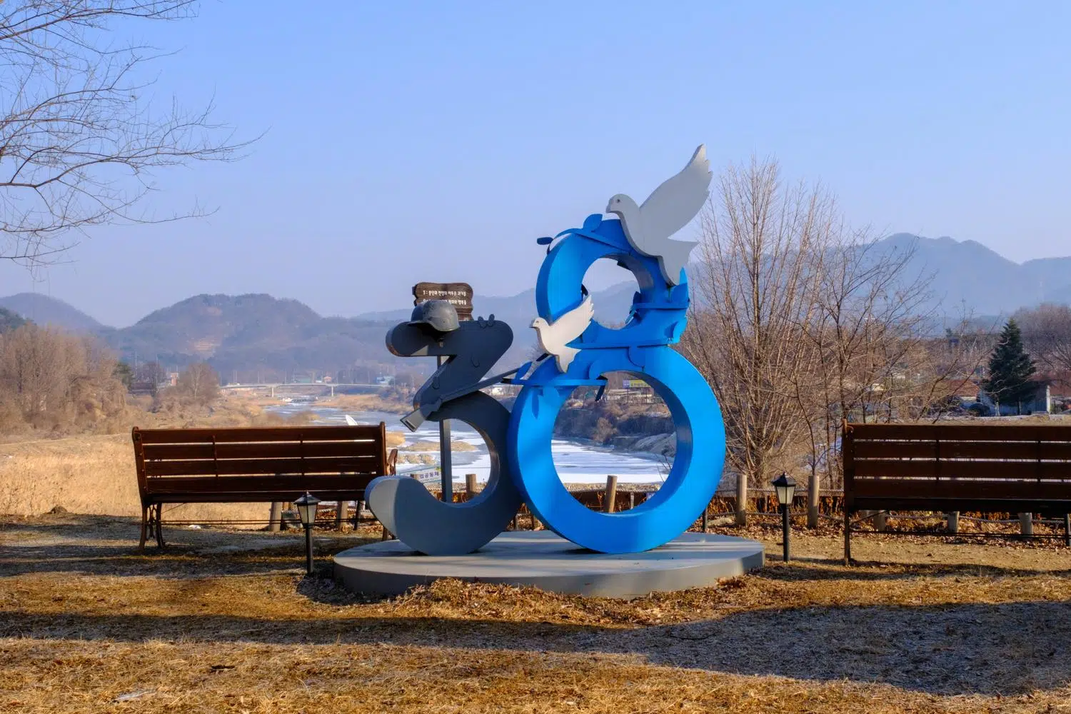 A monument marks the 38th parallel, the former border between North Korea and South Korea, in the city of Pocheon (February 2025).
