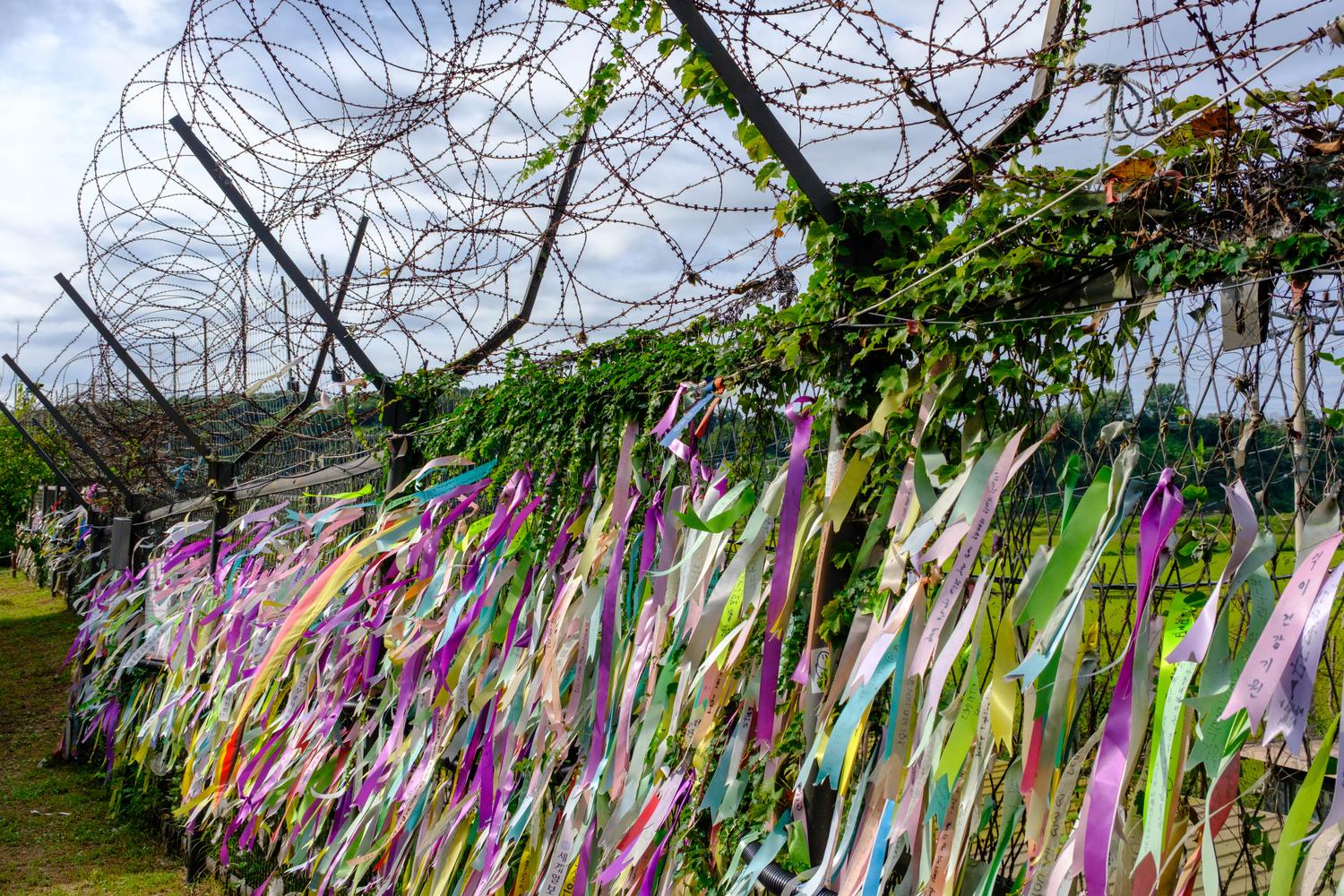“Peace ribbons” on the Civilian Control Line fence at Imjingak (September 2024).