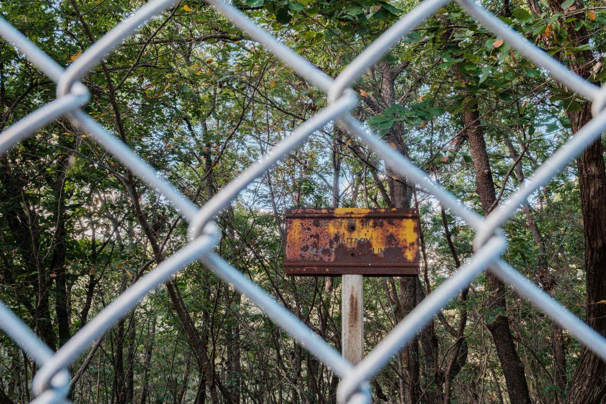 In the middle of the DMZ, the Military Demarcation Line is marked only by 1,292 rusting signs which are placed at intervals. The north facing side of the signs are written in Korean and Chinese and the south facing side in Korean and English.