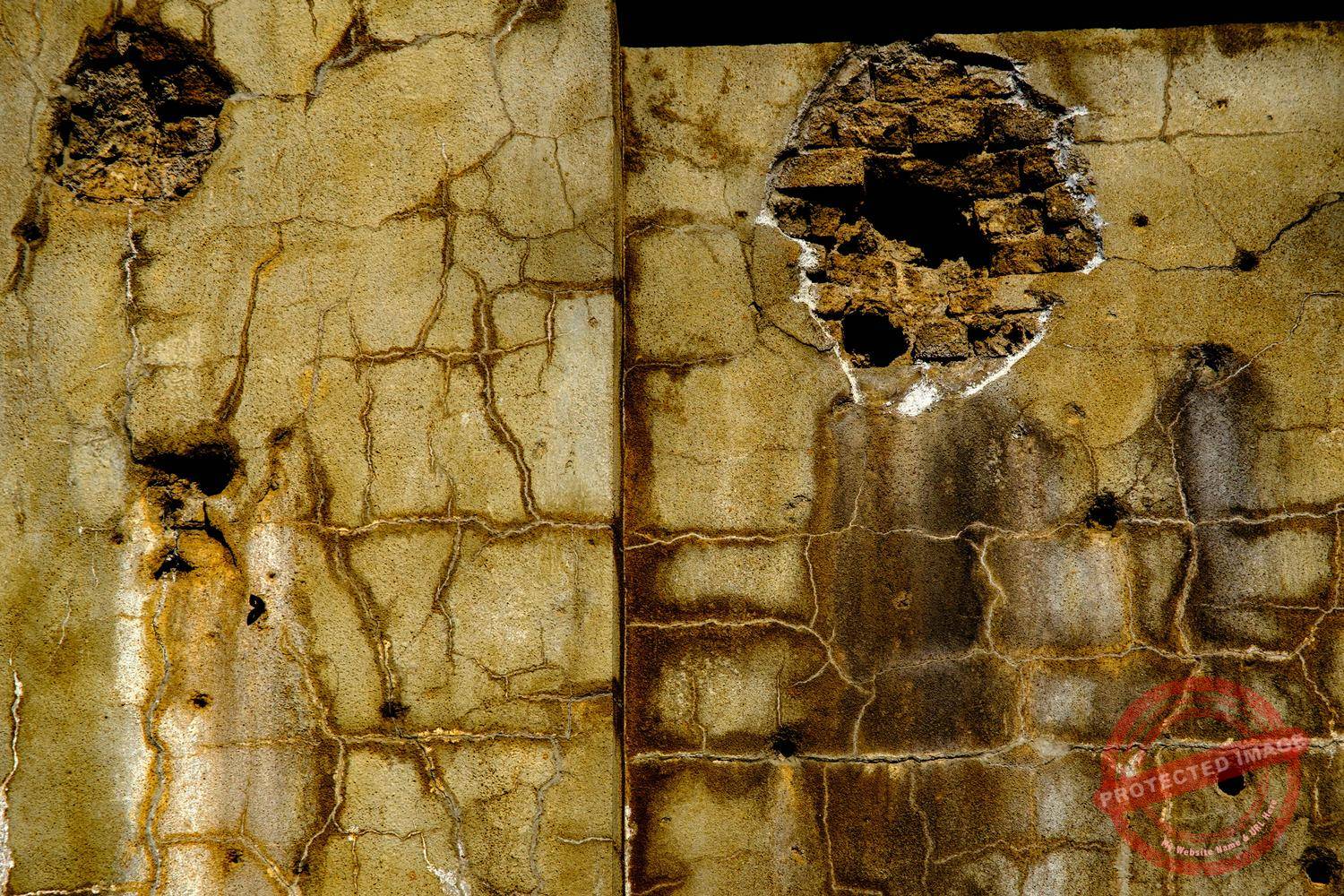Shrapnel and bullet holes have curiously created a shape resembling a helmeted soldier on one of the walls of the Workers’ Party Headquarters (February 2025).
